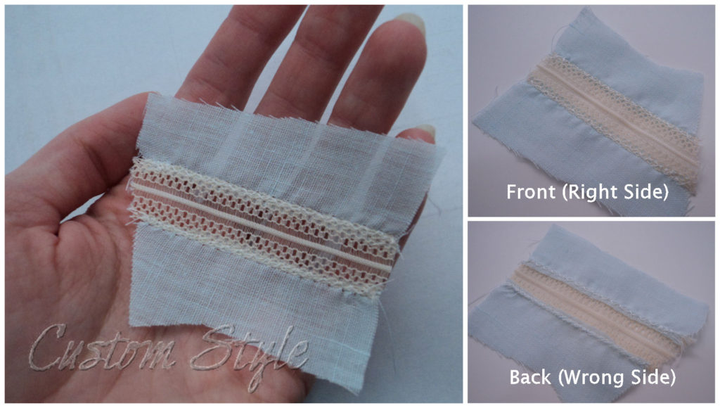 I searched for a long time to find a suitable insertion lace. I finally found a simple one I liked at M&J Trimming.