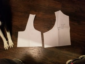 With the supplies purchased, it was time to draft the pattern. The bodice is a sidelacing bodice. My previous gamurra have all been front lacing. I spent an afternoon drafting a new pattern and cutting a sample from an old bedsheet to try on. the bodice is nice a snug and should offer good support to the girls. It may be a bit more difficult to get into compared to the previous front lacing bodices I have made.