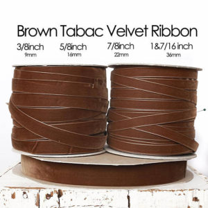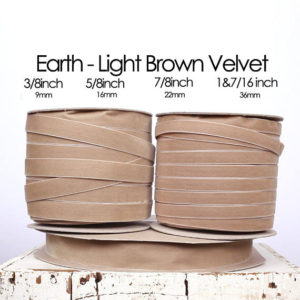 I also needed some trim to offset the sari border. I purchased velvet ribbon in two colors (one in two sizes). I got a narrow (9mm) and wider (22mm) brown velvet ribbon and a narrow light brown velvet ribbon.